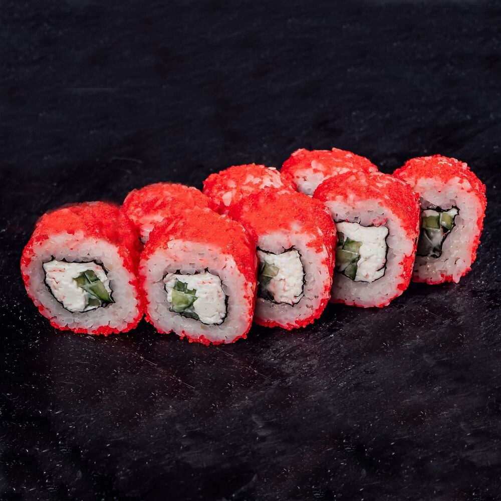 рис, нори, икра масага, краб, огурец